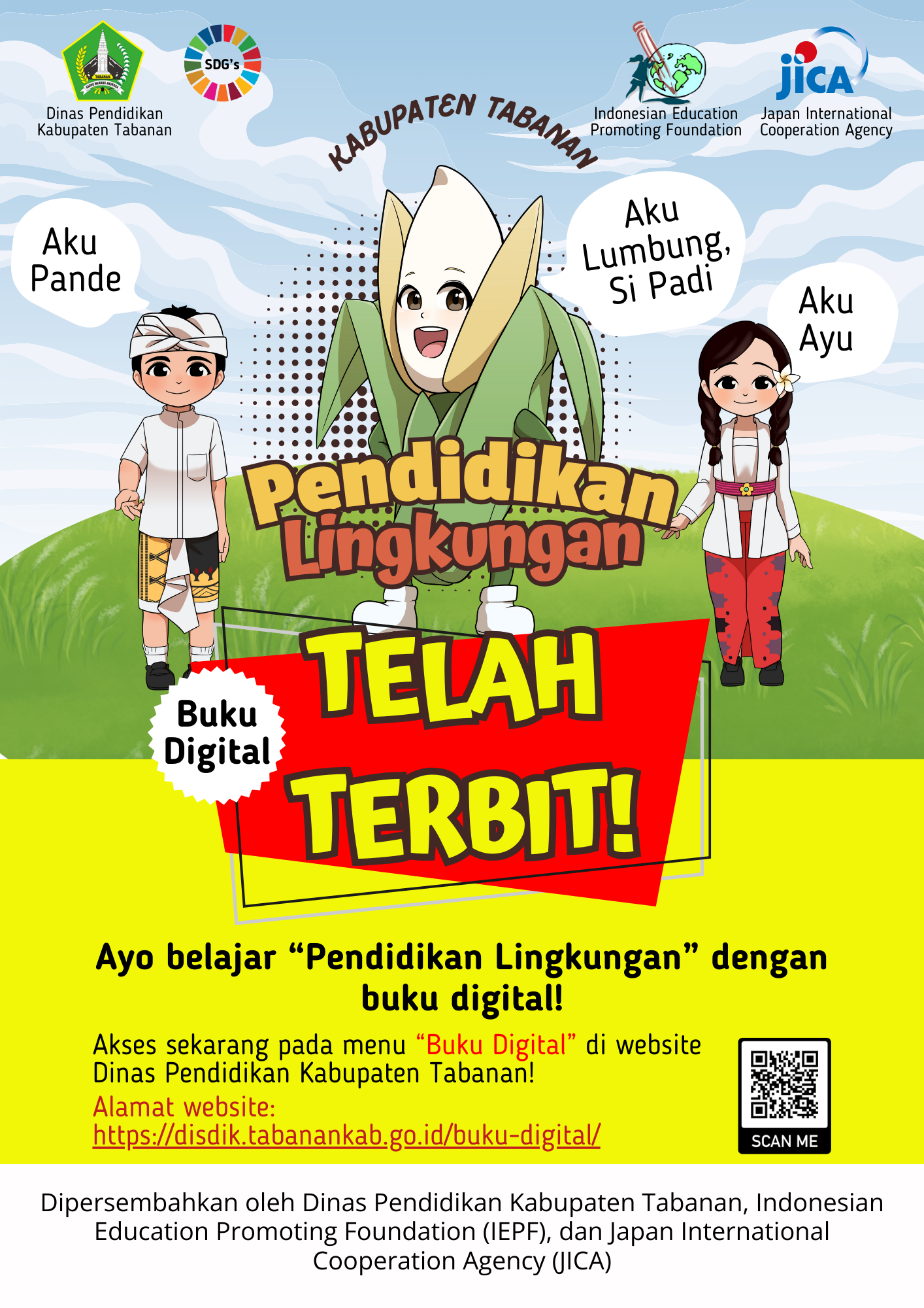 Dinas Pendidikan Kabupaten Tabanan, bekerja sama dengan Indonesian Education Promoting Foundation (IEPF) dan didukung oleh Japan International Cooperation Agency (JICA), dengan bangga mempersembahkan buku digital pendidikan lingkungan. Buku ini adalah hasil kerja sama antara IEPF, guru-guru SD di Tabanan yang tergabung dalam Tim Buku Digital, serta para pakar pendidikan dari universitas ternama di Indonesia dan Jepang.