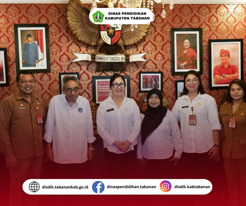 Tabanan, 26 Mei 2025 – Dinas Pendidikan Kabupaten Tabanan mendampingi Bunda PAUD Tabanan, Ny. Rai Wahyuni Sanjaya, dalam menerima audiensi dari Balai Penjaminan Mutu Pendidikan (BPMP) Provinsi Bali. Audiensi yang berlangsung di Rumah Jabatan Bupati ini menjadi bagian dari penguatan sinergi dalam pelaksanaan program prioritas Kemendikdasmen, khususnya implementasi 7 Kebiasaan Anak Indonesia Hebat dan kebijakan-kebijakan terkini di bidang pendidikan anak usia dini (PAUD).