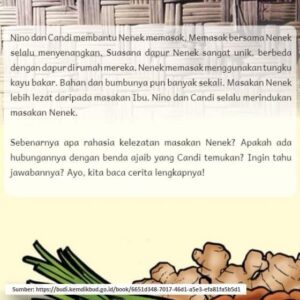 Nino dan Candi berkunjung ke rumah Nenek di kampung. Candi menemukan benda ajaib di dapur Nenek. Benda ajaib itu membuat masakan Nenek sangat lezat, lebih lezat dari masakan ibu mereka. Benda apakah itu? Sobat Literasi yang penasaran dengan kisah Nino dan Candi, dapat membuka https://budi.kemdikbud.go.id/book/6651d348-7017-46d1-a5e3-efa81fa5b5d1 untuk membaca ceritanya hingga tuntas. #BukuBermutu #BacaanBermutu