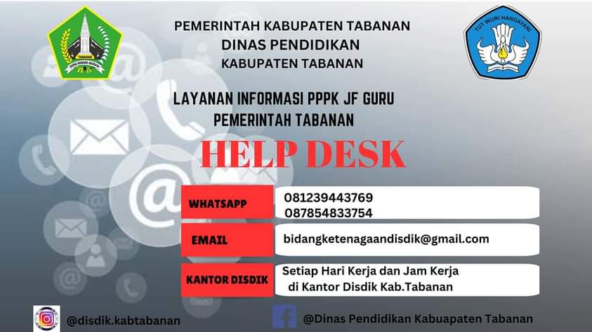 Dinas Pendidikan Kabupaten Tabanan siap membantu melalui layanan Help Desk kami.