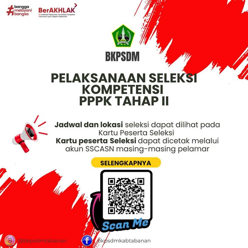 Diinfokan untuk rekan Non ASN Kabupaten Tabanan yang terdaftar pada Seleksi Kompetensi PPPK Tahap 2, jadwal Seleksi telah dibuka !!!