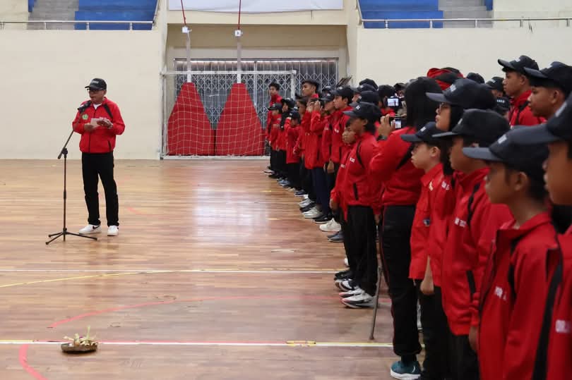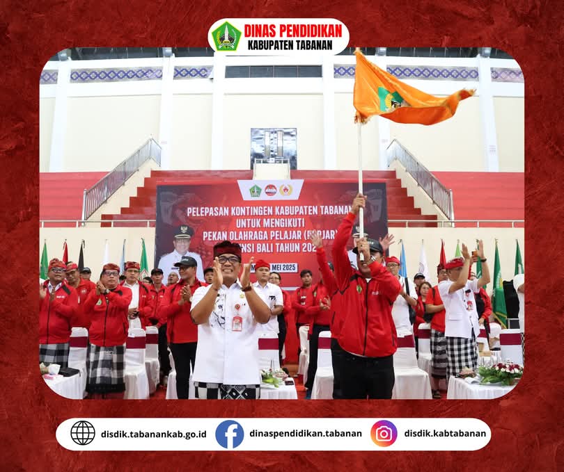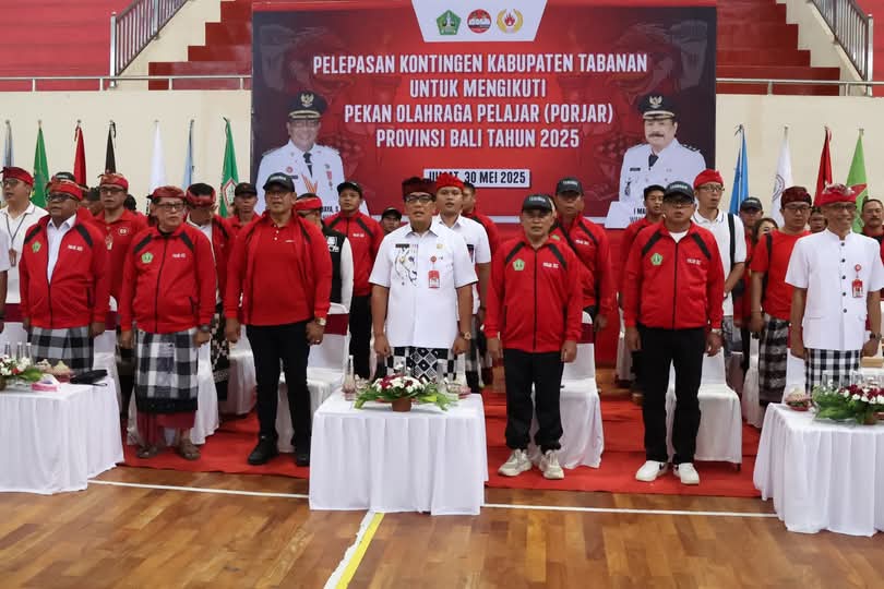 Kepala Dinas Pendidikan Kabupaten Tabanan, I Gusti Putu Ngurah Darma Utama, menghadiri upacara pelepasan Kontingen Pekan Olahraga Pelajar (PORJAR) Kabupaten Tabanan Tahun 2025 yang digelar di GOR Debes Tabanan, Jumat (30/5).