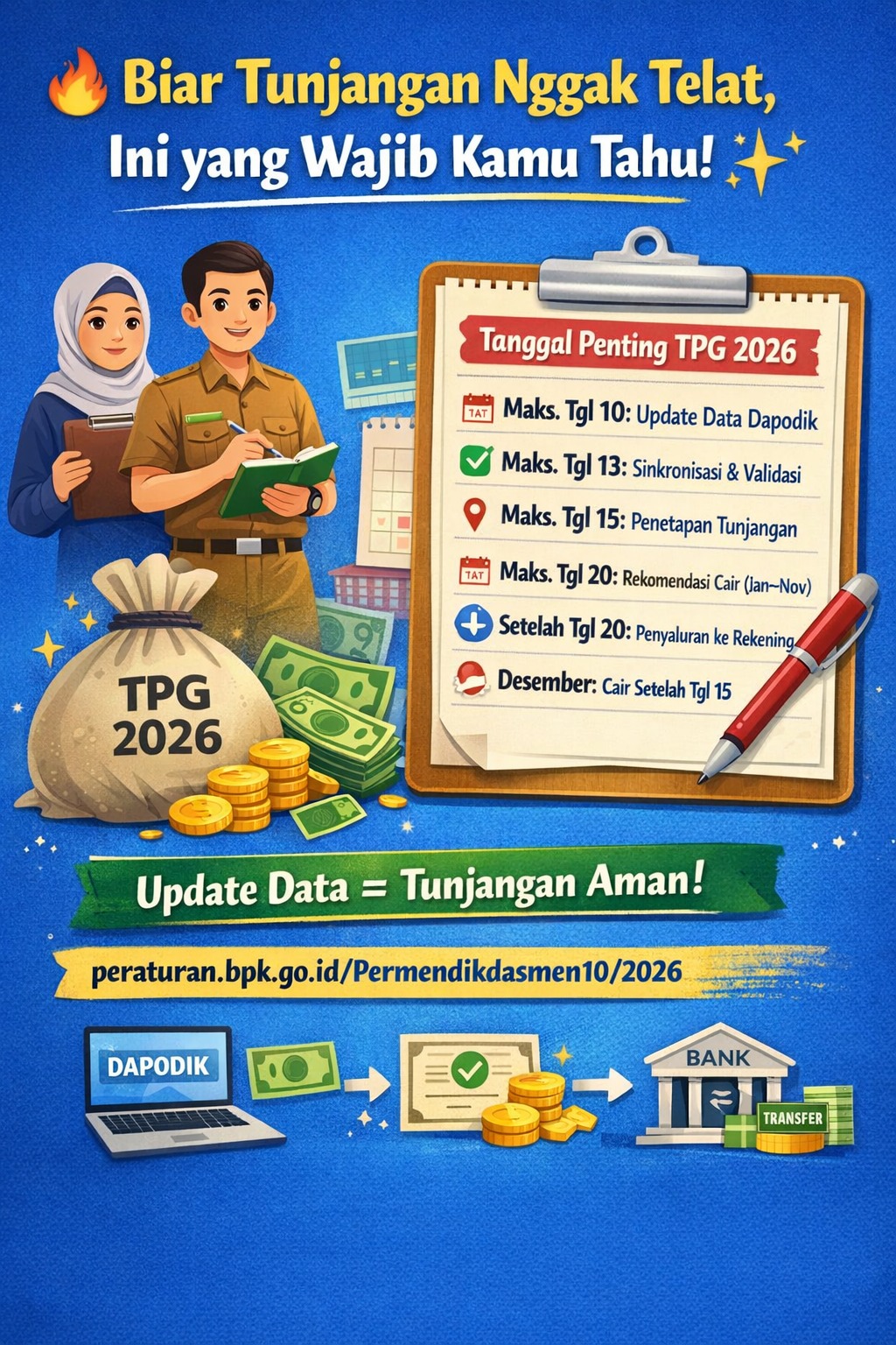 Regulasi ini mengatur penyaluran tunjangan yang kini dilaksanakan secara lebih transparan, akuntabel, dan tepat sasaran, serta disalurkan langsung ke rekening masing-masing guru setiap bulan. Kunci utama dalam penetapan penerima adalah keakuratan dan pembaruan data pada Dapodik, sehingga seluruh guru diharapkan aktif melakukan pemutakhiran data secara berkala.